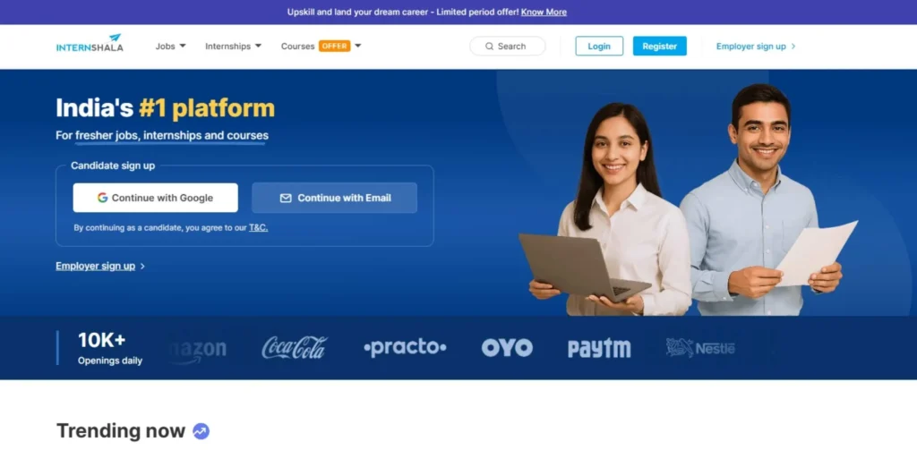 Internshala is India’s biggest internship portal, offering thousands of new internship opportunities every single day. They have a very strong filter system so that you can look for “Work from Home” or “Short-term” opportunities very easily. Many startups use Internshala to find new talent, and although there are many paid opportunities, there are many high-value, unpaid opportunities too, offering a free internship with certificate and Letter of Recommendation.