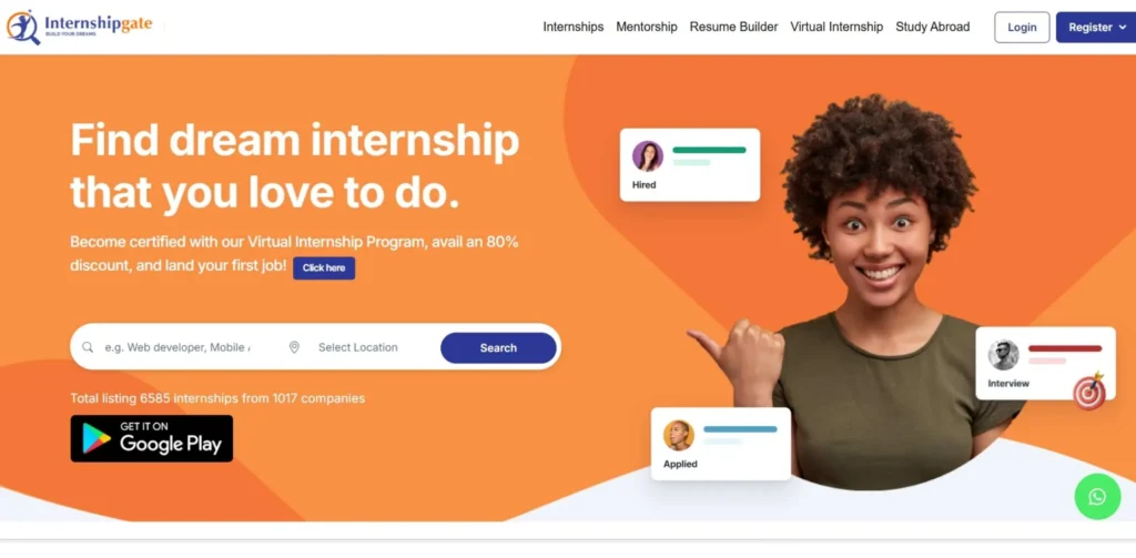 This platform offers a “Remote Internship” program that allows students to connect with industry mentors for trending projects. The program is highly structured and recognized by many Indian employers. Moreover, this program is the best for creating a solid foundation for a corporation.