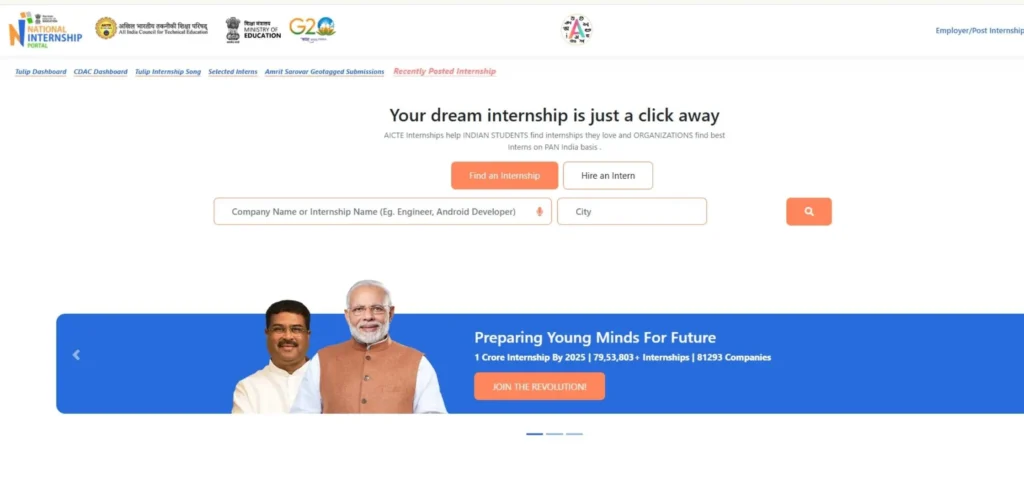 The Urban Learning Internship Program (TULIP) is a joint venture between the Ministry of Housing and Urban Affairs and AICTE. It provides fresh graduates with an opportunity to work with Smart Cities and Urban Local Bodies across India. This is an excellent platform for those who are interested in public policy, civil works, and social development work. The portal is user-friendly, and the selection process is merit-based, giving an opportunity to those who deserve to work on impactful government projects.