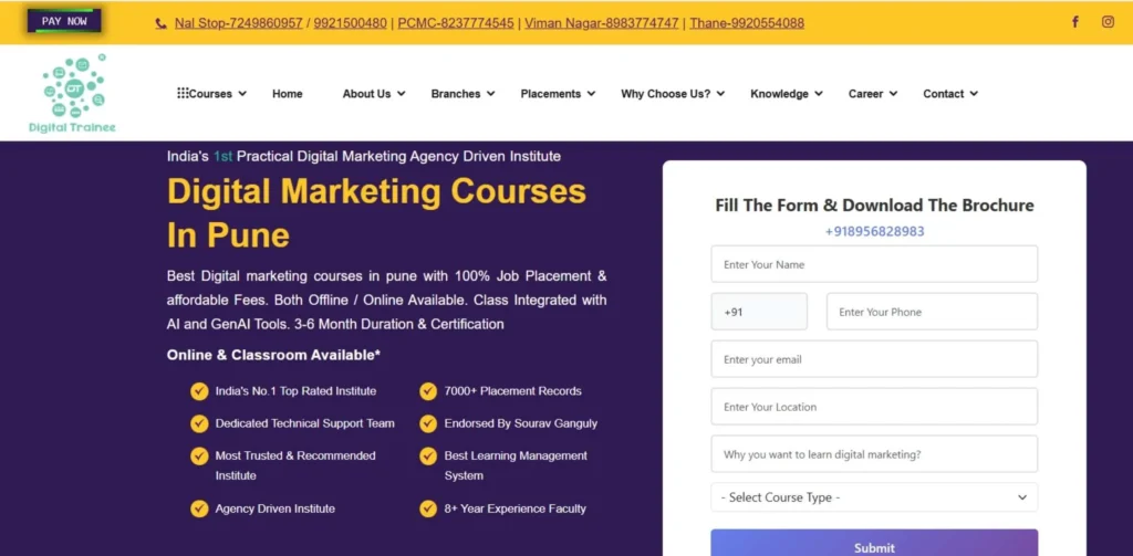 Digital Trainee is known as the first fully practical digital marketing course in Trivandrum, built on a “no-theory” learning philosophy. The program is highly practical-oriented, with students receiving real budgets to run ad campaigns on Google Ads and Facebook Ads. Each learner is provided with six months of free sub-domain and hosting to build and manage their own websites.