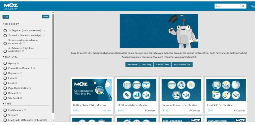 - Moz Academy: $595 per course provides foundational training, which is structured and respected and costs a small cost to an individual who is ready to spend an amount of money that is trusted to the brand.