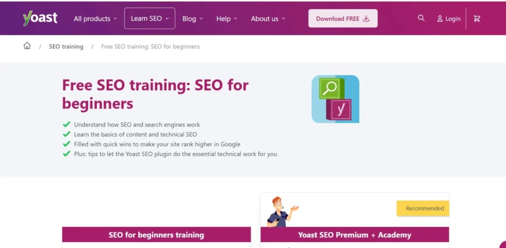HubSpot Academy is a great place to start as a beginner due to being free with a globally recognized curriculum, but Yoast is only $99/year and is ideal for those running a WordPress site.